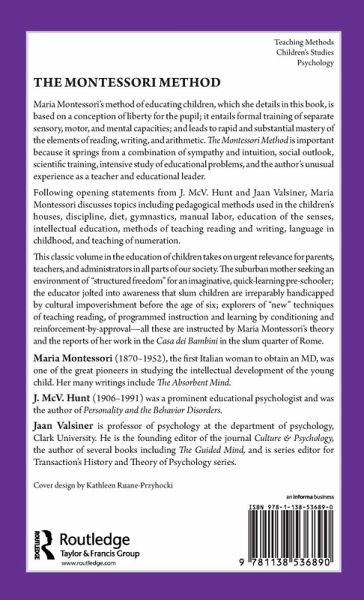 Maria Montessori's method of educating children, which she details in this book, is based on a conception of liberty for the pupil; it entails formal training of separate sensory, motor, and mental capacities; and leads to rapid and substantial mastery of the elements of reading, writing, and arithmetic