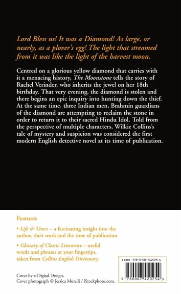 Centred around a glorious yellow diamond that carries with it a menacing history, The Moonstone tells the story of Rachel Verinder, who inherits the stone on her eighteenth birthday. That very evening, the diamond is stolen and there begins an epic enquiry into hunting down the thief. At the same time, three Indian men, Brahmin guardians of the diamond are attempting to reclaim the stone in order to return it to their sacred Hindu Idol.