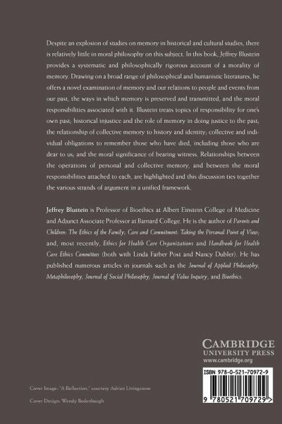 Despite an explosion of studies on memory in historical and cultural studies, there is relatively little in moral philosophy on this subject. In this book, Jeffrey Blustein provides a systematic and philosophically rigorous account of a morality of memory. Drawing on a broad range of philosophical and humanistic literatures, he offers a novel examination of memory and our relations to people and events from our past, the ways in which memory is preserved and transmitted, and the moral responsibilities associated with it. Blustein treats topics of responsibility for one's own past; historical injustice and the role of memory in doing justice to the past; the relationship of collective memory to history and identity; collective and individual obligations to remember those who have died, including those who are dear to us; and the moral significance of bearing witness.