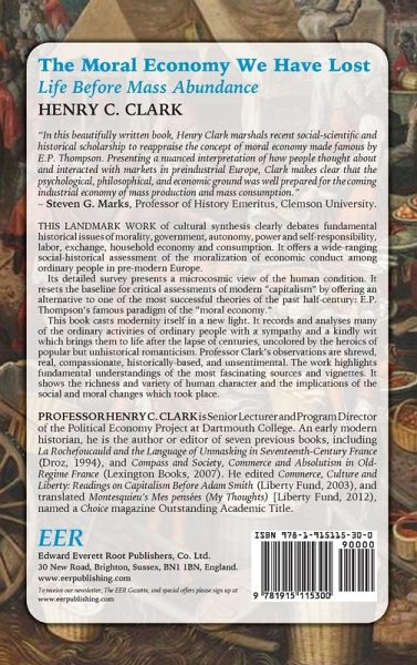 THIS LANDMARK WORK of cultural synthesis clearly debates fundamental historical issues of morality, government, autonomy, power and self-responsibility, labor, exchange, household economy and consumption. It offers a wide-ranging social-historical assessment of the moralization of economic conduct among ordinary people in pre-modern Europe. / Its detailed survey presents a microcosmic view of the human condition. It resets the baseline for critical assessments of modern "capitalism" by offering an alternative to one of the most successful theories of the past half-century: E.P. Thompson's famous paradigm of the "moral economy." / This book casts modernity itself in a new light. It records and analyses many of the ordinary activities of ordinary people with a sympathy and a kindly wit which brings them to life after the lapse of centuries, uncolored by the heroics of popular but unhistorical romanticism. Professor Clark's observations are shrewd, real, compassionate, historically-based, and unsentimental. The work highlights fundamental understandings of the most fascinating sources and vignettes. It shows the richness and variety of human character and the implications of the social and moral changes which took place. / Clark begins with a critique of one of the most influential historical theories - that 18th-century food rioters gave voice to a widely shared "moral economy" in resistance to the advent of market capitalism. He offers a different way of thinking about what was "moral" in the economy of pre-modern Europeans. He pulls together recent work on economic and social history alike to show how both a zero-sum moral economy of honor and a surprisingly acquisitive individualism were pervasive in Northwest Europe over the six centuries before the Industrial Revolution.