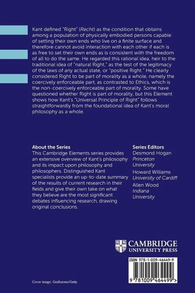 In this Element Kant's 'Recht' concept refers to the freedom of individuals to set their own ends, a condition that is consistent with the freedom of all. This rational idea, akin to 'natural Right,' is considered a test for the legitimacy of state laws. Kant's 'Universal Principle of Right' aligns with the foundational idea of moral philosophy.