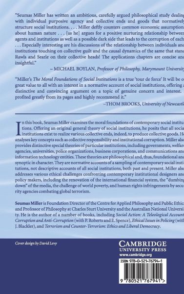 Introduction to 'the moral foundations of social institutions' Part I. Theory: 1. A teleological account of institutions 2. The moral foundations of institutions 3. Individual autonomy: agency and structure 4. Collective moral responsibility 5. Institutional corruption Part II. Applications: 6. The professions 7. Welfare institutions 8. The university 9. The police 10. The business corporation 11. Institutions and information and communication technology 12. Government.