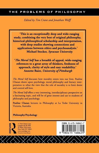 The Moral Self addresses the question of how morality enters into our lives. Pauline Chazan draws upon psychology, r ral philosophy and literary interpretation to rebut the view that morality's role is to limit desire and control self-love. Perserving the ancients' connection between what is good for the self and what is morally good, Chazan argues that a certain kind of care for the self is central to moral agency. Her intriguing argument begins with a critical examination of the views of Hume, Rousseau and Hegel. The constructive part of the book takes a more unusual turn by synthesising the work on the analyst Heinz Kohut and Aristotle into Chazan's own positive account, which is then illustrated by the use of Russian literature.
