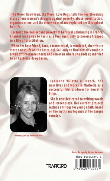 The More I Know Men, the More I Love Dogs, tells the heartbreaking story of one woman's struggle against poverty, abuse, prostitution, organised crime, and the men who used and exploited her throughout her life. Escaping the neglect and poverty of her rural upbringing in France, Chantal runs away to Paris as a teenager, only to become trapped in a life of prostitution. When her best friend, Lara, a trans-sexual, is murdered, she tried to start a new way of life on the Costa del Sol, only to find herself caught in a web of timeshare sharks, con-men, and finally ends up married to an East End drug baron.
