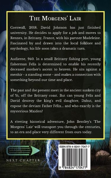 Cornwall, 2018. David Johnson has just finished university. He decides to apply for a job and moves to Rennes, in Brittany, France, with his partner Madeleine. Fascinated by and drawn into the local folklore and mythology, his life soon takes a dramatic turn. Audierne, 940. In a small Brittany fishing port, young fisherman Felis is determined to enable his recently deceased mother's ascent to heaven. He sits against a menhir - a standing stone - and makes a connection with something beyond our time and place. The past and the present meet in the ancient sunken city of Ys, off the Brittany coast. But can young Felis and David destroy the king's evil daughter, Dahut, and expose the deviant Father Félix... and who exactly is the mysterious Maiden? A riveting historical adventure, John Bentley's 'The Morgens' Lair' will transport you through the centuries, to an era and place very different from ours today.