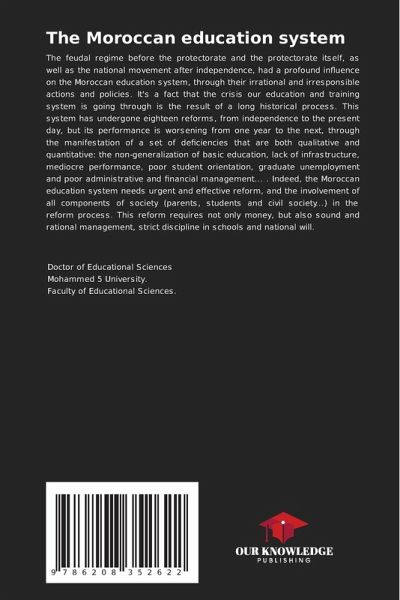The feudal regime before the protectorate and the protectorate itself, as well as the national movement after independence, had a profound influence on the Moroccan education system, through their irrational and irresponsible actions and policies. It's a fact that the crisis our education and training system is going through is the result of a long historical process. This system has undergone eighteen reforms, from independence to the present day, but its performance is worsening from one year to the next, through the manifestation of a set of deficiencies that are both qualitative and quantitative: the non-generalization of basic education, lack of infrastructure, mediocre performance, poor student orientation, graduate unemployment and poor administrative and financial management... . Indeed, the Moroccan education system needs urgent and effective reform, and the involvement of all components of society (parents, students and civil society...) in the reform process. This reform requires not only money, but also sound and rational management, strict discipline in schools and national will.