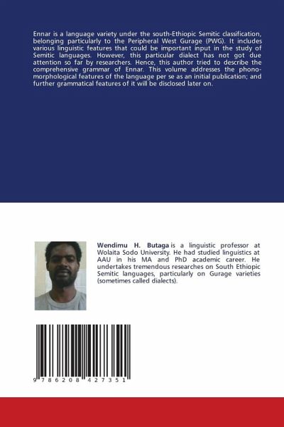 Ennar is a language variety under the south-Ethiopic Semitic classification, belonging particularly to the Peripheral West Gurage (PWG). It includes various linguistic features that could be important input in the study of Semitic languages. However, this particular dialect has not got due attention so far by researchers. Hence, this author tried to describe the comprehensive grammar of Ennar. This volume addresses the phono-morphological features of the language per se as an initial publication; and further grammatical features of it will be disclosed later on.