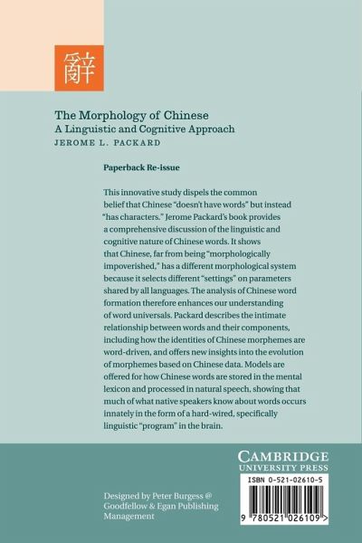 This ground breaking study dispels the common belief that Chinese 'doesn't have words' but instead 'has characters'. Jerome Packard's book provides a comprehensive discussion of the linguistic and cognitive nature of Chinese words. It shows that Chinese, far from being 'morphologically impoverished', has a different morphological system because it selects different 'settings' on parameters shared by all languages. The analysis of Chinese word formation therefore enhances our understanding of word universals. Packard describes the intimate relationship between words and their components, including how the identities of Chinese morphemes are word-driven, and offers new insights into the evolution of morphemes based on Chinese data. Models are offered for how Chinese words are stored in the mental lexicon and processed in natural speech, showing that much of what native speakers know about words occurs innately in the form of a hard-wired, specifically linguistic 'program' in the brain.