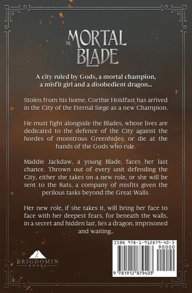 A city ruled by Gods, a mortal champion, a misfit girl and a disobedient dragon... Stolen from his home, Corthie Holdfast has arrived in the City of the Eternal Siege as a new Champion. He must fight alongside the Blades, whose lives are dedicated to the defence of the City against the hordes of monstrous Greenhides; or die at the hands of the Gods who rule. Maddie Jackdaw, a young Blade, faces her last chance. Thrown out of every unit defending the City, either she takes on a new role, or she will be sent to the Rats, a company of misfits given the perilous tasks beyond the Great Walls. Her new role, if she takes it, will bring her face to face with her deepest fears, for beneath the walls, in a secret and hidden lair, lies a dragon, imprisoned and waiting...
