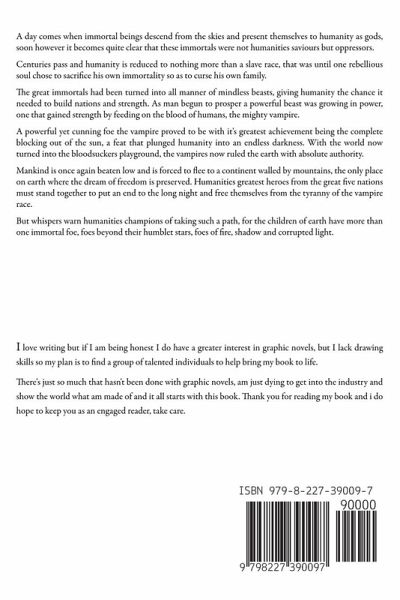 A day comes when immortal beings descend from the skies and present themselves to humanity as gods, soon however it becomes quite clear that these immortals were not humanities saviours but oppressors. Centuries pass and humanity is reduced to nothing more than a slave race, that was until one rebellious soul chose to sacrifice his own immortality so as to curse his own family. The great immortals had been turned into all manner of mindless beasts, giving humanity the chance it needed to build nations and strength. As man begun to prosper a powerful beast was growing in power, one that gained strength by feeding on the blood of humans, the mighty vampire. A powerful yet cunning foe the vampire proved to be with it's greatest achievement being the complete blocking out of the sun, a feat that plunged humanity into an endless darkness. With the world now turned into the bloodsuckers playground, the vampires now ruled the earth with absolute authority. Mankind is once again beaten low and is forced to flee to a continent walled by mountains, the only place on earth where the dream of freedom is preserved. Humanities greatest heroes from the great five nations must stand together to put an end to the long night and free themselves from the tyranny of the vampire race. But whispers warn humanities champions of taking such a path, for the children of earth have more than one immortal foe, foes beyond their humblet stars, foes of fire, shadow and corrupted light.