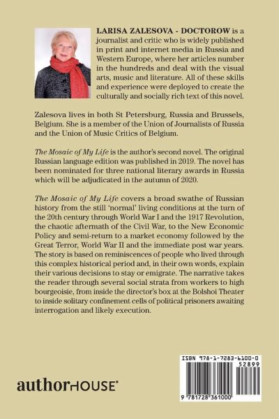 The Mosaic of My Life is the author's second novel. The original Russian language edition was published in 2019. The novel has been nominated for three national literary awards in Russia which will be adjudicated in the autumn of 2020. The Mosaic of My Life covers a broad swathe of Russian history from the still 'normal' living conditions at the turn of the 20th century through World War I and the 1917 Revolution, the chaotic aftermath of the Civil War, to the New Economic Policy and semi-return to a market economy followed by the Great Terror, World War II and the immediate post war years. The story is based on reminiscences of people who lived through this complex historical period and, in their own words, explain their various decisions to stay or emigrate. The narrative takes the reader through several social strata from workers to high bourgeoisie, from inside the director's box at the Bolshoi Theater to inside solitary confinement cells of political prisoners awaiting interrogation and likely execution.
