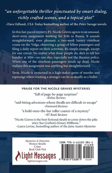 "The Moscow Affair is a thoroughly entertaining and unforgettable thriller punctuated by smart dialog, richly crafted scenes, and a topical plot." -Dave Edlund, USA Today bestselling author of Valiant Savage In this fast-paced mystery, P.I. Nicole Graves agrees to an unusual, short-term assignment working for MI6 in Russia. It sounds straightforward, even pleasant: a two-week luxury riverboat cruise on the Volga, observing a group of fellow passengers and filing a daily report on their activities. It's simple enough, except for one caveat: No matter what these people do, she's to tell her…mehr