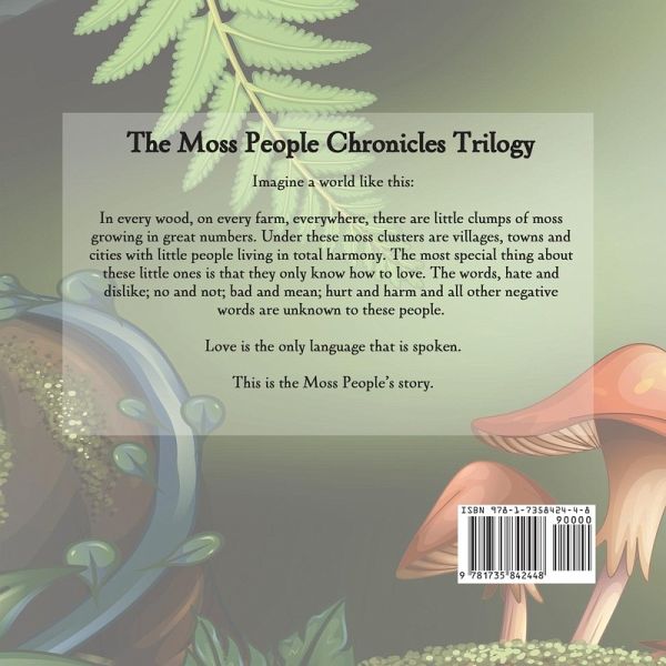Imagine a world like this: In every wood, on every farm, everywhere, there are little clumps of moss growing in great numbers. Under these moss clusters are villages, towns and cities with little people living in total harmony. The most special thing about these little ones is that they only know how to love. The words hate and dislike; no and not; bad and mean; hurt and harm and all other negative words are unknown to these people. Love is the only language that is spoken. This is The Moss People's Story