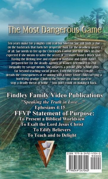 Ten years make for a mighty cold trail but Sluefoot Sue still finds a clue on the backtrack that fuels her desperate hunt for the deadliest quarry of all. Sue needs to fire up the Clockwork Catfish and find allies no one expected if she means to solve the secret of Treasure Island's Black Spot. Having the lifelong love and respect of husband and family hasn't prepared her for the deadly agenda of women determined to end inequality by savage means. She suspects a private girls' school goes far beyond teaching social graces. Even this fearless cowgirl dreads the consequences of re-uniting with a bitter foster child carrying a horrifying grudge. Climb to the Aether on a lunar quest to stop a deadly threat at home -- Just don't count on making it back.