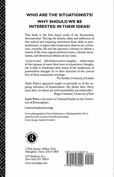`An analysis of Situationism is long overdue, and Sadie Plant's rigorous account finally gives it credit for its enormous contribution to postwar theory and revolutionary politics.' - New Statesman and Society