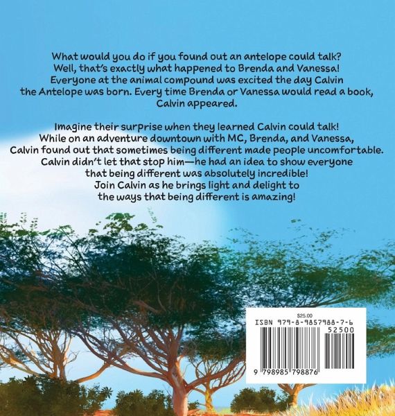 This book is about reading and why reading is so crucial. No matter what it takes get an education love to read and learn new things. Reading is Fundamental. What would you do if you found out an antelope could talk? Well, that's exactly what happened to Brenda and Vanessa! Everyone at the animal compound was excited the day Calvin the Antelope was born. Every time Brenda or Vanessa would read a book, Calvin appeared. Imagine their surprise when they learned Calvin could talk! While on an adventure downtown with MC, Brenda and Vanessa, Calvin found out that sometimes being different made people uncomfortable. Calvin didn't let that stop him - he had an idea to show everyone that different was absolutely incredible! Join Calvin as he brings light and delight to the ways that being different is amazing!