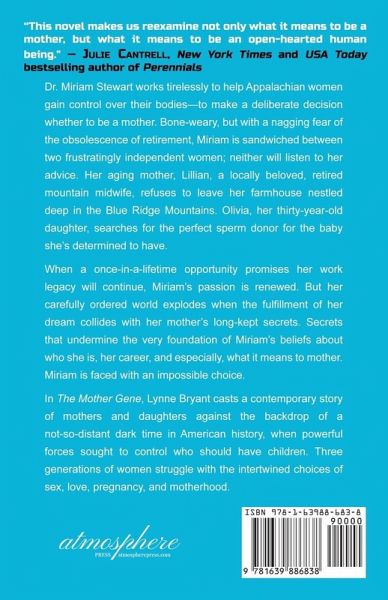 Dr. Miriam Stewart works tirelessly to help Appalachian women gain control over their bodies-to make a deliberate decision whether to be a mother. Bone-weary, but with a nagging fear of the obsolescence of retirement, Miriam is sandwiched between two frustratingly independent women; neither will listen to her advice. Her aging mother, Lillian, a locally beloved, retired mountain midwife, refuses to leave her farmhouse nestled deep in the Blue Ridge Mountains. Olivia, her thirty-year-old daughter, searches for the perfect sperm donor for the baby she's determined to have. When a once-in-a-lifetime opportunity promises her work legacy will continue, Miriam's passion is renewed. But her carefully ordered world explodes when the fulfillment of her dream collides with her mother's long-kept secrets. Secrets that undermine the very foundation of Miriam's beliefs about who she is, her career, and especially, what it means to mother. Miriam is faced with an impossible choice. In The Mother Gene, Lynne Bryant casts a contemporary story of mothers and daughters against the backdrop of a not-so-distant dark time in American history, when powerful forces sought to control who should have children. Three generations of women struggle with the intertwined choices of sex, love, pregnancy, and motherhood.