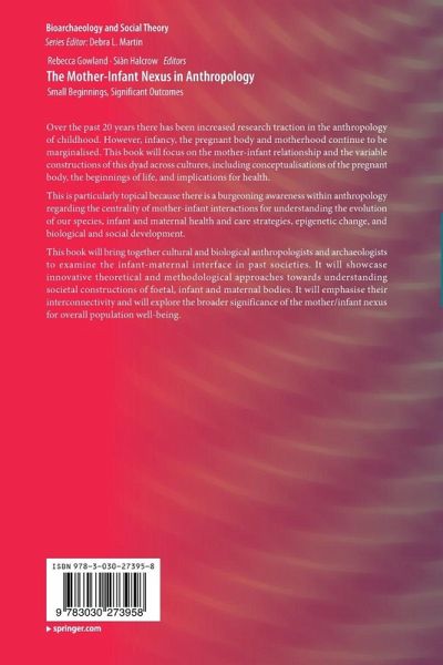 Foreword.- Chapter 1. Introduction: The Mother/Infant Nexus in Archaeology and Anthropology.- Section 1. Infant and maternal health in bioarchaeology.- Chapter 2. Assessing early life stress in bioarchaeology: New approaches to understanding the vulnerable maternal-fetal relationship.- Chapter 3. Like Mother, Like Child: Investigating perinatal and maternal health stress in Post-Medieval London.- Chapter 4. The mother-offspring nexus revealed by linear enamel hypoplasia: Chronological and contextual evaluation of developmental stress using incremental microstructures of enamel.- Section 2. Nourishment and the Nexus.- Chapter 5. The ecology of breastfeeding and mother-infant immune functions.- Chapter 6. What doesn't kill you: Childhood health, nutrition, and parental investment in early Anglo-Saxon East Anglia.- Chapter 7. Cooperative Lactation and the Maternal-Infant Nexus.- Section 3. Social and cognitive interactions in early life.- Chapter 8. Mothering Tongues: Anthropological Perspectives on Language and the Mother-Infant Nexus.- Chapter 9. The Mother-Infant Sleep Nexus: night-time experiences in early infancy and later outcomes.- Chapter 10. Moving beyond the Obstetrical Dilemma Hypothesis: Birth, weaning and infant care in the Plio-Pleistocene.- Section 4. Rupturing the nexus: infant loss in the archaeological record.- Chapter 11. Using bone histology to identify stillborn and short-lived infants in the archaeological record.- Chapter 12. Archaeothanatology as a Tool for Interpreting Death During Pregnancy: A Proposed Methodology Using Examples from Medieval Ireland.- Chapter 13. Touching the Surface: Biological, behavioral, and emotional aspects of plagiocephaly at Harappa.- Chapter 14. Ruptured: Reproductive Loss, Bodily Boundaries, Time and the Life Course.- Chapter 15. Conclusions and Future Directions.- Index.