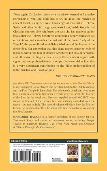 Are there Old Testament roots of the veneration of the Blessed Virgin Mary? Margaret Barker traces the roots of the devotion to Mary as Mother of the Lord back to the Old Testament and the first temple in Jerusalem. The evidence is consistent over more than a millennium: there had been a female deity in Israel, the Mother figure in the Royal cult, who had been abandoned about 600BCE. She was almost written out of the Hebrew text, almost excluded from the canon. This first of two volumes traces the history of the Lady in the Temple, and looks forward to the second volume in which Barker will show how the Lady of the Temple is reclaimed in the advent of Christianity, and becomes the Lady in the Church. The result is breathtaking, and like all Barker's work, is impossible to put down.
