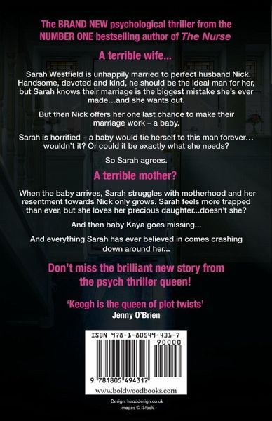 The BRAND NEW psychological thriller from the NUMBER ONE bestselling author of The Nurse A terrible wife... Sarah Westfield is unhappily married to perfect husband Nick. Handsome, devoted and kind, he should be the ideal man for her, but Sarah knows their marriage is the biggest mistake she's ever made...and she wants out. But then Nick offers her one last chance to make their marriage work - a baby. Sarah is horrified - a baby would tie herself to this man forever...wouldn't it? Or could it be exactly what she needs? So Sarah agrees. A terrible mother? When the baby arrives, Sarah struggles with motherhood and her resentment towards Nick only grows. Sarah feels more trapped than ever, but she loves her precious daughter...doesn't she? And then baby Kaya goes missing... And everything Sarah has ever believed in comes crashing down around her... Don't miss the brilliant new story from the psych thriller queen! Praise for The Nurse: 'Keogh is the queen of compelling narratives and twisty plots' Jenny O'Brien 'A wonderful book, I can't rate this one highly enough. If only there were ten stars, it's that good. Valerie Keogh is a master story-teller, and this is a masterful performance.' Anita Waller 'This deliciously twisty story kept me up late at night, desperate to know the outcome. A definite 5 stars.' Keri Beevis