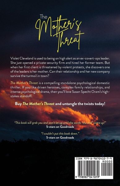 A small town. A driven young woman struggles to run a new business. Secrets haunt her from the past. Violet Cleveland, an ex-covert-ops leader, is used to being on high alert and opens a private security firm with her close-knit former team. But when her first client is threatened by protests, she discovers one of the leaders is her mother. Can her new company and her relationship with her mother survive the turmoil in town? The Mother's Threat is a page-turner packed with drama and family secrets. If you like complex characters, moral dilemmas, family conflict, and secret sisters, then you'll love this high-stakes psychological suspense thriller. Buy The Mother's Threat and untangle the twists today!