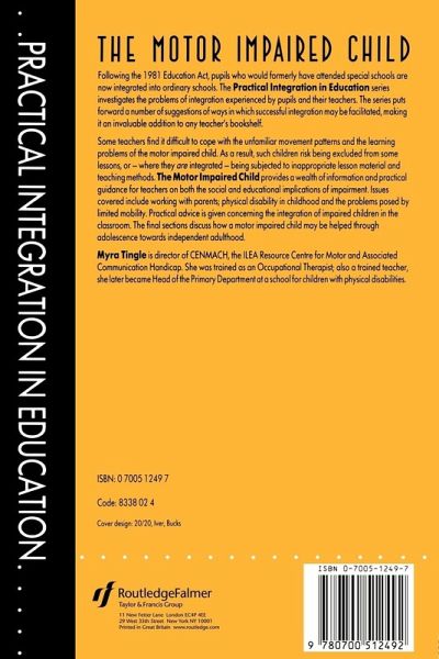 The Motor Impaired Child provides a wealth of information and practical guidance for teachers on both the social and educational implications of impairment. Issues covered include working with parents, physical disability in childhood, and the problems posed by limited mobility. Practical advice is given on the integration of impaired children in the classroom, and the final sections focus on how a motor impaired child may be helped through adolescence towards independent adulthood.