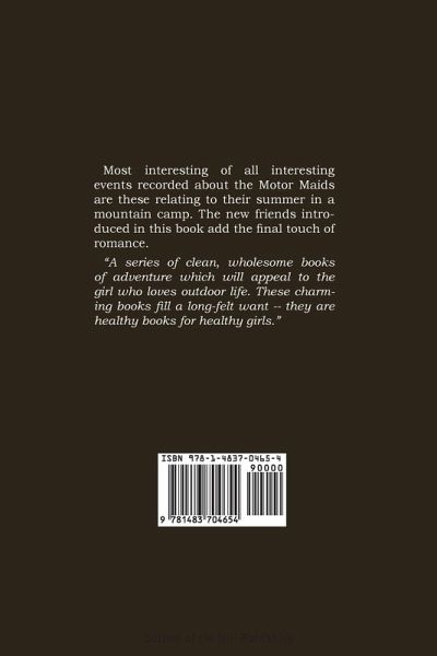 Most interesting of all interesting events recorded about the Motor Maids are these relating to their summer in a mountain camp. The new friends introduced in this book add the final touch of romance. "A series of clean, wholesome books of adventure which will appeal to the girl who loves outdoor life. These charming books fill a long-felt want -- they are healthy books for healthy girls."