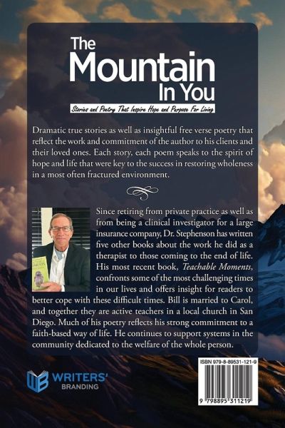 Synopsis: Dramatic true stories as well as insightful free verse poetry that reflect the work and commitment of the author to his clients and their loved ones. Each story, each poem speaks to the spirit of hope and life that were key to the success in restoring wholeness in a most often fractured environment. Autobiography: Since retiring from private practice as well as from being a clinical investigator for a large insurance company, Dr. Stephenson has written five other books about the work he did as a therapist to those coming to the end of life. His most recent book, Teachable Moments, confronts some of the most challenging times in our lives and offers insight for readers to better cope with these difficult times. Bill is married to Carol, and together they are active teachers in a local church in San Diego. Much of his poetry reflects his strong commitment to a faith-based way of life. He continues to support systems in the community dedicated to the welfare of the whole person.