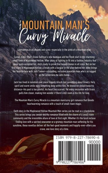 Love comes in all shapes and sizes-especially in the arms of a mountain man. Curves & All: That's Grace Sullivan's new boutique and her fresh start in the charming small town of Maplewood Hollow. After years of fighting to fit into a fashion industry that never quite accepted her, she's ready to prove that beauty comes in all sizes. But on her first night in Maplewood Hollow, a brush with a burglar in the alley behind her store brings her face-to-face with Jack Tanner-a brooding, reclusive mountain man who's as rugged as the wilderness he calls home. Jack has lived in isolation ever since tragedy struck, but something about Grace's fiery spirit and warm smile stirs something deep within him. He knows he should keep his distance-his past is too painful, his heart too scarred. Yet every encounter with Grace pulls him closer, making him wonder if there's still room in his life for love. The Mountain Man's Curvy Miracle is a mountain man/curvy girl romance that blends heartwarming romance with a touch of small-town magic. Each story in the Maplewood Hollow Mountain Men series can be read as a standalone. This series brings you swoon-worthy romance filled with the charm of a small-town community and the irresistible allure of love at first sight. Whether it's the local recluse finding love with a spirited newcomer or a grumpy mountain man softening for his sunshine, these novellas deliver all the feel-good moments and happily-ever-afters you crave, one love story at a time.