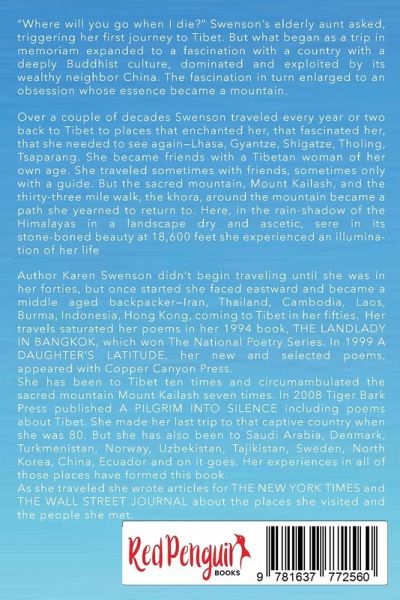 "Where will you go when I die?" Swenson's elderly aunt asked, triggering her first journey to Tibet. But what began as a trip in memoriam expanded to a fascination with a country with a deeply Buddhist culture, dominated and exploited by its wealthy neighbor China. The fascination in turn enlarged to an obsession whose essence became a mountain. Over a couple of decades Swenson traveled every year or two back to Tibet to places that enchanted her, that fascinated her, that she needed to see again-Lhasa, Gyantze, Shigatze, Tholing, Tsaparang. She became friends with a Tibetan woman of her own age. She traveled sometimes with friends, sometimes only with a guide. But the sacred mountain, Mount Kailash, and the thirty-three mile walk, the khora, around the mountain became a path she yearned to return to. Here, in the rain-shadow of the Himalayas in a landscape dry and ascetic, sere in its stone-boned beauty at 18,600 feet she experienced an illumination of her life.