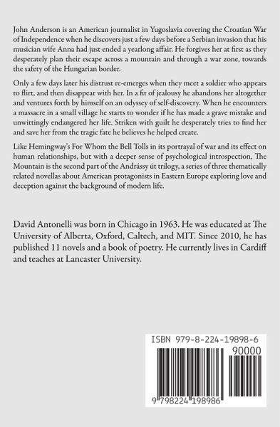 John Anderson is an American journalist in Yugoslavia covering the Croatian War of Independence when he discovers just a few days before a Serbian invasion that his musician wife Anna had just ended a yearlong affair. He forgives her at first as they desperately plan their escape across a mountain and through a war zone, towards the safety of the Hungarian border. Only a few days later his distrust re-emerges when they meet a soldier who appears to flirt, and then disappear with her. In a fit of jealousy he abandons her altogether and ventures forth by himself on an odyssey of self-discovery. When he encounters a massacre in a small village he starts to wonder if he has made a grave mistake and unwittingly endangered her life. Striken with guilt he desperately tries to find her and save her from the tragic fate he believes he helped create. Like Hemingway's For Whom the Bell Tolls in its portrayal of war and its effect on human relationships, but with a deeper sense of psychological introspection, The Mountain is the second part of the Andrássy út trilogy, a series of three thematically related novels about American protagonists in Eastern Europe exploring love and deception against the background of modern life. One reviewer gave it 5 stars and said: 'This is a more than worthy follow up to the first novel in this series - a story about war and its affect on relationships as much as it is the personal path of self discovery for the protagonist...great writing too! "