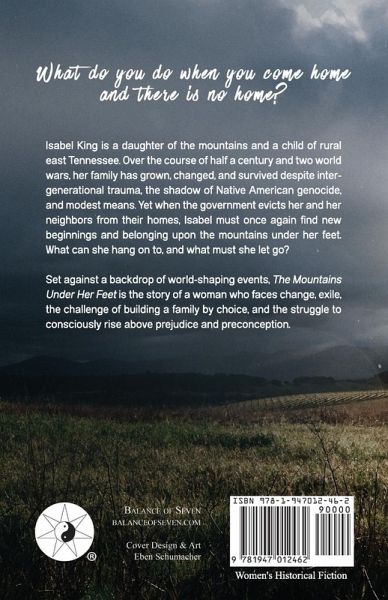 What do you do when you come home and there is no home? Isabel King is a daughter of the mountains and a child of rural east Tennessee. Over the course of half a century and two world wars, her family has grown, changed, and survived despite intergenerational trauma, the shadow of Native American genocide, and modest means. Yet when the government evicts her and her neighbors from their homes, Isabel must once again find new beginnings and belonging upon the mountains under her feet. What can she hang on to, and what must she let go? Set against a backdrop of world-shaping events, The Mountains Under Her Feet is the story of a woman who faces change, exile, the challenge of building a family by choice, and the struggle to consciously rise above prejudice and preconception.