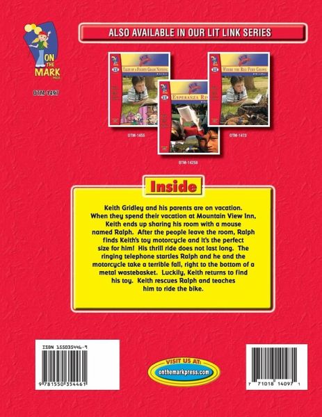 While Keith Gridley and his parents are on vacation at Mountain View Inn, Keith ends up sharing his room with a mouse named Ralph. After the people leave the room, Ralph finds Keith's, toy motorcycle and it's the perfect size for him! His thrill ride does not last long. The ringing telephone starts Ralph and he and the motorcycle take a terrible fall, right to the bottom of a metal wastebasket. Luckily, Keith returns to find his toy and subsequently teaches Ralph to ride the motorcycle. Novel by Beverly Cleary. Reproducible chapter questions, plus comprehension questions, a story summary, author biography, creative and cross curricular activities, complete with answer key. Expectations: Students will: 1. be introduced to the world of fiction and fantasy through the writings of Beverly Cleary. 2. reinforce various reading skills and techniques. 3. develop and improve student creativity. 4. improve independent reading skills and work habits. 5. improve and develop higher level thinking skills.