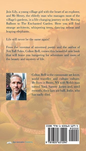 Join Lily, a young village girl with the heart of an explorer, and Mr Henry, the elderly man who manages most of the village's gardens, in a life changing journey on the Moving Balloon to The Enchanted Garden. Here you will find strange architects, whispering trees, dancing zebras and leaping elephants. Life will never be the same again! From the inventor of unversed poetry and the author of Ten Tall Tales, Colton Bell, comes this beautiful new book that will leave you hungering for adventure and more of the beauty and mystery of life.