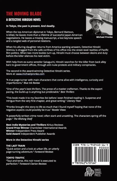 Peace is a performance. Murder is the encore. When American diplomat Bernard Mattson is found dead in his Tokyo home-his stomach opened by a Japanese sword-Detective Hiroshi Shimizu is called to the scene. The diplomat's estranged daughter, Jamie Mattson, half-Japanese and half-American, arrives to collect her father's research manuscript-a document powerful enough to reshape U.S.-Japan, and indeed pan-Asian, relations. But the paper has vanished, the house is ransacked, and the killers are still in motion. Teaming up with his old-school mentor Takamatsu and ex-sumo enforcer Sakaguchi, Hiroshi dives into Tokyo's hidden layers: smoky back alleys, silent temples, diplomatic compounds, and small, hidden bars where loyalty is currency and truth is a luxury. The deeper he goes, the clearer it becomes-this case isn't just about one murder. It's about the invisible blade slicing through Tokyo's corridors of power. As Hiroshi untangles lies and half-truths stretching from Washington to Shinjuku, he finds himself caught between duty and survival in a city where honor still kills. To bring justice to a man who may not deserve it, Hiroshi must face what justice really means when the system runs on silence. For fans of Michael Connelly, Tana French, and Tokyo Vice, The Moving Blade delivers a tense, atmospheric crime thriller steeped in Japanese culture, international intrigue, and noir suspense. In Tokyo, the past is present. And deadly. Winner of multiple international book awards Best Indie Mysteries and Thrillers Kirkus Reviews (2018) Grand Prize Winner Chanticleer International Book Awards Global Thrillers (2018) Winner Independent Press Award for Crime Fiction (2019) Gold Award Literary Titan Book Award (2018) Five Star Honoree B.R.A.G. Medallion (2018) Gold Award Independent Publisher Awards for Mystery (2019) Silver Medal Readers' Favorite for Thriller (2019) In Tokyo, the past is present. And deadly.