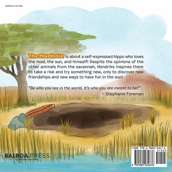 The Mudhole is about a self-expressed hippo who loves the mud, the sun, and himself! Despite the opinions of the other animals from the savannah, Hendriks inspires them to take a risk and try something new, only to discover new friendships and new ways to have fun in the sun! "Be who you are in the world. It's who you are meant to be!" - Stephanie Foreman