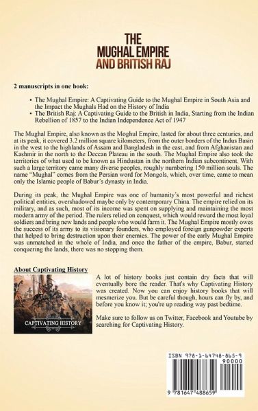 If you want to discover the captivating history of the Mughal Empire and British Raj, then keep reading... Two captivating manuscripts in one book:The Mughal Empire: A Captivating Guide to the Mughal Empire in South Asia and the Impact the Mughals Had on the History of India The British Raj: A Captivating Guide to the British in India, Starting from the Indian Rebellion of 1857 to the Indian Independence Act of 1947 The Mughal Empire, also known as the Moghul Empire, lasted for about three centuries, and at its peak, it covered 3.2 million square kilometers, from the outer borders of the Indus Basin in the west to the highlands of Assam and Bangladesh in the east, and from Afghanistan and Kashmir in the north to the Deccan Plateau in the south. The Mughal Empire also took the territories of what used to be known as Hindustan in the northern Indian subcontinent. With such a large territory came many diverse peoples, roughly numbering 150 million souls. The name "Mughal" comes from the Persian word for Mongols, which, over time, came to mean only the Islamic people of Babur's dynasty in India. During its peak, the Mughal Empire was one of humanity's most powerful and richest political entities, overshadowed maybe only by contemporary China. The empire relied on its military, and as such, most of its income was spent on supplying and maintaining the most modern army of the period. The rulers relied on conquest, which would reward the most loyal soldiers and bring new lands and people who would farm it. The British Raj did not cover just where India is today. In fact, it spanned across the territories of four separate states that exist today: Bangladesh, Pakistan, India, and Burma. It is estimated that around a quarter of a million British were buried in these territories since the East India Company set its first foothold. The oldest European graves can be found in port cities such as Madras or Bombay, where the first merchants settled trading offices. Here are just some of the topics covered in part 1 of this book:Origins of the Mughal Empire In the New Land Humayun of the Mughal Empire The Empire under Emperor Akbar One Hundred Years of the Mughal Empire (1605-1707) The Decline and Fragmentation of the Empire (1707-1857) The Final Generations of the Mughals (1748-1857) Memory of the Mughal Empire And much, much more! Here are just some of the topics covered in part 2 of this book:East India Company, the First British Presence on the Indian Subcontinent East India Company, the First British Presence on the Indian Subcontinent The Crown's Rule of India The Famines of India Nationalism in India India during World War I Mahatma Gandhi World War II, the "Quit India" Movement, and Independence And much, much more! So if you want to learn more about the Mughal Empire and British Raj, scroll up and click the "add to cart" button!