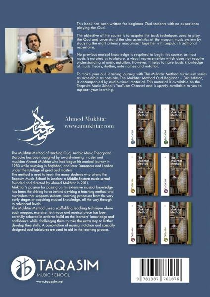 This book has been written for beginner Oud students with no experience playing the Oud. The objective of the course is to acquire the basic techniques used to play the Oud and understand the characteristics of the maqam music system by studying the eight primary maqamaat together with popular traditional repertoire. No previous musical knowledge is required to begin this course, as most music is notated as tablature, a visual representation which does not require an understanding of music notation. However, it helps to have basic knowledge of music theory, rhythm, note names and notation. To make your oud learning journey with The Mukhtar Method curriculum series as accessible as possible, The Mukhtar Method Oud Beginner - 3rd edition, is accompanied by audio-visual material. This material is available on the Taqasim Music School's YouTube Channel and is openly available to you to support your learning.