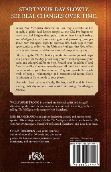 Start your day slowly. See real changes over time. When Paul McAllister discovers he isn't very successful at life or golf, a golfer Paul knows simply as the Old Pro begins to share practical insights that apply to more than his golf swing. The Mulligan Journal features insights and journaling prompts about how mulligans apply to everyday life. Each page is your opportunity to reflect on the Ultimate Mulligan that God offers to help you discover and deepen your real purpose every day. Like having the Old Pro beside you, this interactive journal helps you prepare for the day, prioritizing your relationships over your tasks, and asking God for his help. Record your "solid shots" and "need a mulligan" moments-what you did well each week and the areas where you'd like a do-over. Pray over specific lists each week of people, relationships, and concerns and record God's faithfulness as he responds to your prayers. Play with Jesus as your Caddy, Brother, and Friend in life-starting each day in conversation with him using The Mulligan Journal.