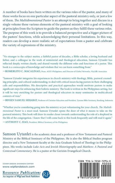 A number of books have been written on the various roles of the pastor, and many of these works focus on one particular aspect of the pastoral ministry only, or just a few of them. The Multidimensional Pastor is an attempt to bring together and discuss in a single volume these various elements of the pastoral ministry with a goal of looking at principles from the Scripture to guide the pastors as they fulfill these various roles. The purpose of this work is to provide a balanced perspective and a bigger picture of the pastors' functions, while acknowledging their personal limitations. In this way, readers can develop a more realistic set of expectations from a pastor and celebrate the variety of expressions of the ministry.