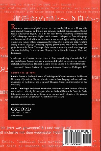 Two thirds of global internet users are non-English speakers. Despite this, most scholarly literature on the internet and computer-mediated-communication (CMC) focuses exclusively on English. This is the first book devoted to analyzing internet related CMC in languages other than English. The volume collects 18 new articles on facets of language and internet use, all of which revolve around several central topics: writing systems, the structure and features of local