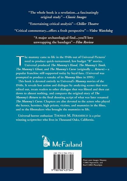 The mummy came to life in the 1940s out of Universal Pictures' need to produce quick turnaround, low budget B movies. Universal produced The Mummy's Hand, The Mummy's Tomb, The Mummy's Ghost, and The Mummy's Curse (originally The Mummy's Return) and thus created a popular franchise that is still supported today by a following of loyal fans. (Universal was prompted to produce a remake of its Mummy films in 1999.) This book is devoted entirely to Universal's Mummy movies of the 1940s. It reveals lost action and dialogue by analyzing scenes that were edited out days before The Mummy's Hand was released to theaters, treats readers to other dialogue that was filmed and then cut down to almost nothing before being included in the films, and compares and contrasts the original story of The Mummy's Return to the final shooting script of what was later renamed The Mummy's Curse. Each of the films has its own chapter, and chapters are also devoted to the actors who played the heroes, heroines, high priests, victims, and mummies in the films, and to the filmmakers who brought the mummies to life.