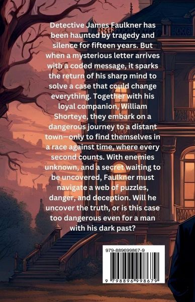 etective James Faulkner has been haunted by tragedy and silence for fifteen years. But when a mysterious letter arrives with a coded message, it sparks the return of his sharp mind to solve a case that could change everything. Together with his loyal companion, William Shorteye, they embark on a dangerous journey to a distant town-only to find themselves in a race against time, where every second counts. With enemies unknown, and a secret waiting to be uncovered, Faulkner must navigate a web of puzzles, danger, and deception. Will he uncover the truth, or is this case too dangerous even for a man with his dark past?