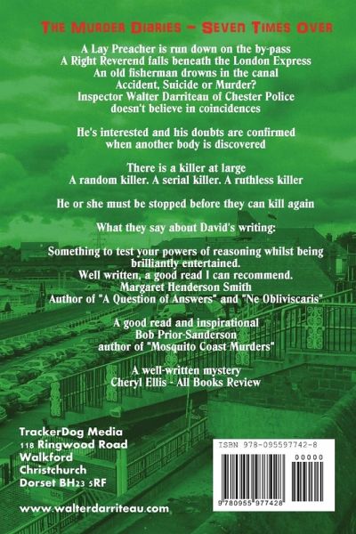A Preacher is run down on the by-pass, a Right Reverend falls under the London Express; a fisherman drowns in the canal. Accident suicide, or murder? Inspector Walter Darriteau of Chester police doesn't believe in coincidences. His doubts are confirmed with another killing. Maggie O'Brien on a bench in the forest, dew dripping from her nose, a cobweb from her hat to the bench, death by carbon monoxide poisoning, yet no car in the damp car park. There's a killer at large, a random killer, a serial killer, a ruthless killer who'll stop at nothing. Why? What's the purpose behind these unrelated deaths? It's a race against time; he or she must be stopped before they kill again. The Murder Diaries is set in the City of Chester. Darriteau is an adopted Cestrian, he's nearing retirement, and his oppo Sergeant Karen Greenwood covets his job. Walter isn't ready to end things on a sour note. He knows this case will define his career. He determines to trap the killer, putting his own life on the line.