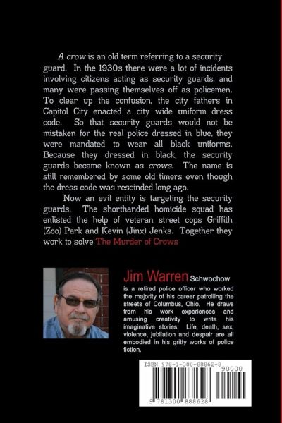 A crow is an old term referring to a security guard. In the 1930s there were a lot of incidents involving citizens acting as security guards, and many were passing themselves off as policemen. To clear up the confusion, the city fathers in Capitol City enacted a city wide uniform dress code. So that security guards would not be mistaken for the real police dressed in blue, they were mandated to wear all black uniforms. Because they dressed in black, the security guards became known as crows, and are still known as crows even though the dress code was rescinded long ago. Now an evil entity is targeting the security guards. The shorthanded homicide squad has enlisted the help of veteran street cops Griffith (Zoo) Park and Kevin (Jinx) Jenks. Together they work to solve The Murder of Crows