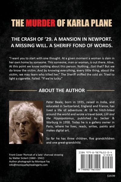 The Murder of Karla Plane is a mystery story, full of intrigue, glamour and complex characters. Set in both Paris, New York City and the expensive enclave of Newport, Rhode Island. in the period between WW1 and the great Wall Street crash of 1929, the story follows Karla, an intelligent and sophisticated French beauty who becomes seriously implicated in the dangers of the Great War and the dangers of American HIgh Society during the Roaring 20's.