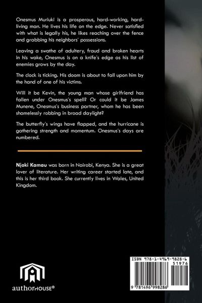 Onesmus Muriuki is a prosperous, hard-working, hard-living man. He lives his life on the edge. Never satisfied with what is legally his, he likes reaching over the fence and grabbing his neighbors' possessions. Leaving a swathe of adultery, fraud and broken hearts in his wake, Onesmus is on a knife's edge as his list of enemies grows by the day. The clock is ticking. His doom is about to fall upon him by the hand of one of his victims. Will it be Kevin, the young man whose girlfriend has fallen under Onesmus's spell? Or could it be James Munene, Onesmus's business partner, whom he has been shamelessly robbing in broad daylight? The butterfly's wings have flapped, and the hurricane is gathering strength and momentum. Onesmus's days are numbered.