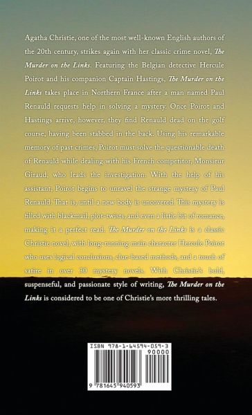 Agatha Christie, one of the most well-known English authors of the 20th century, strikes again with her classic crime novel, The Murder on the Links. Featuring the Belgian detective Hercule Poirot and his companion Captain Hastings, The Murder on the Links takes place in Northern France after a man named Paul Renauld requests help in solving a mystery. Once Poirot and Hastings arrive, however, they find Renauld dead on the golf course, having been stabbed in the back. Using his remarkable memory of past crimes, Poirot must solve the questionable death of Renauld while dealing with his French…mehr