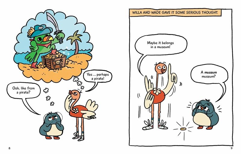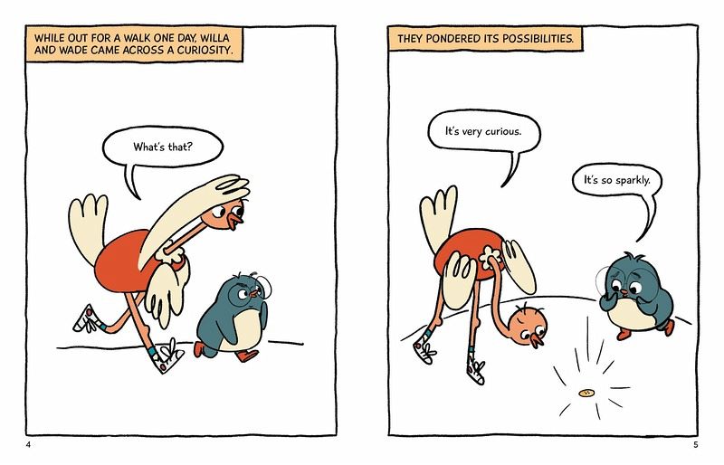 Come one, come all to a very special event ... the grand opening of the Museum of Willa and Wade! Willa and Wade (an ostrich and a penguin) discover something curious on their walk. The small round object is sparkly but looks very old. They've discovered a treasure! And it belongs in a museum. In fact, it belongs in their very own museum, which will be called the Museum of Willa and Wade (MOWW). So, how do you make a museum? Well, first they have to choose a location. A box labeled MOWW is just the thing. Next, they need to add a few more treasures. Wade's rock, handed down for generations, and Willa's dinosaur are perfect for rounding out the collection. Add a café and a grand opening and voilà! They've created the perfect museum - almost as perfect as their friendship! Judith Henderson's graphic-novel series for early readers is a testament to trying new things, being undeterred by setbacks and learning as you go. The two adorable flightless birds are ever curious and always optimistic as they use creative problem-solving to work their way to solutions. Through it all, their friendship is the star, as the two are always open to each other's suggestions. Illustrations by Sara Sarhangpour add to the whimsical tone of the story and, with just a few per spread, never overwhelm young readers. This book offers excellent character-education lessons on teamwork, initiative and perseverance. It could also serve as a great discussion starter on the value of museums or on what the things we cherish represent to us.