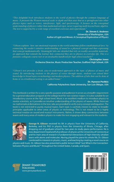 George N. Gibson received his BA in physics from the University of California, Berkeley, and his PhD in physics from the University of Illinois, Chicago, after dropping out of graduate school for two years to study piano performance. He is now full professor of physics at the University of Connecticut and his main area of research is fundamental interactions of high-intensity ultrafast lasers with atoms and molecules and ultrafast spectroscopy of biological molecules. Having played the piano his whole life, Dr. Gibson combined his interests in physics, music, and teaching by creating a novel course on physics and music. Dr. Gibson has also presented a public lecture titled "Just What Is the Connection between Physics and Music?" throughout the United States, Canada, and Spain.